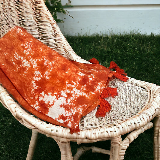 Tie dyed orange textured throw blanket/bedcover with tassels