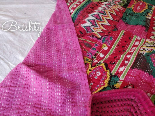 Colorful pink kantha bedcover