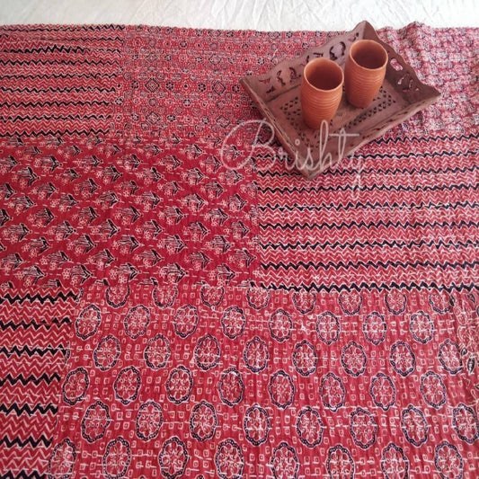 Red ajrakh block printed kantha bedcover