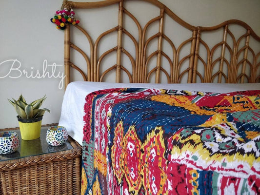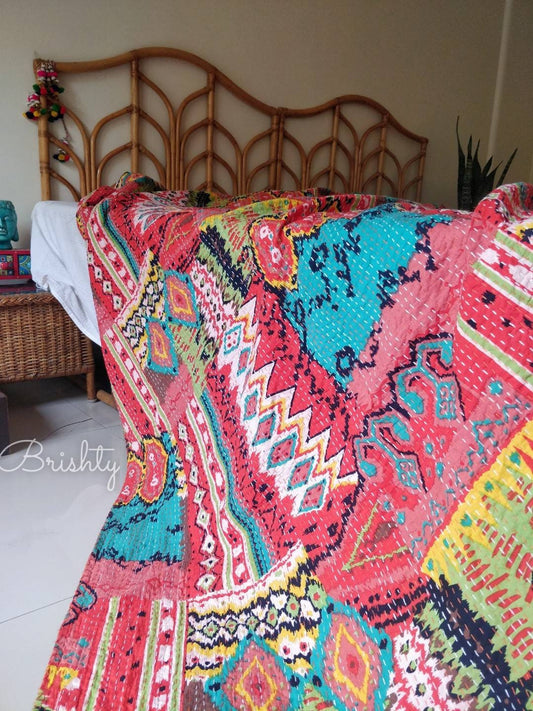Bright and colorful abstract kantha bedcover