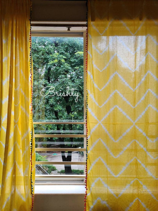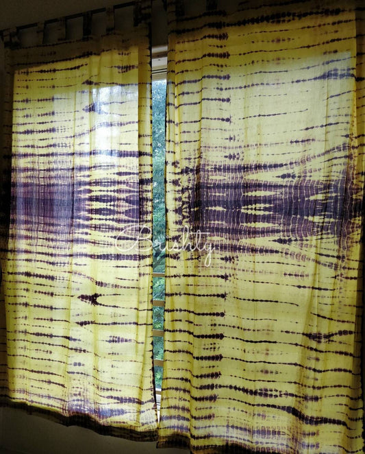 Yellow tie dyed cotton sheer curtains