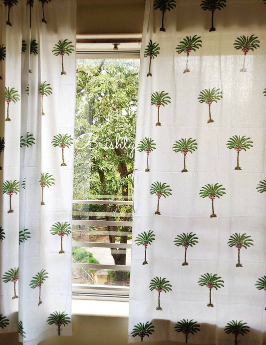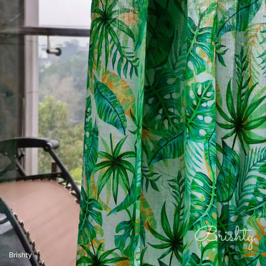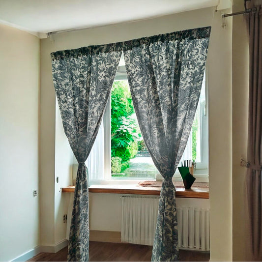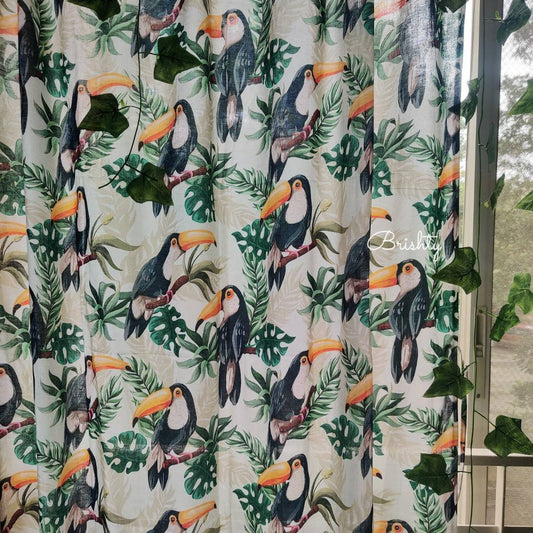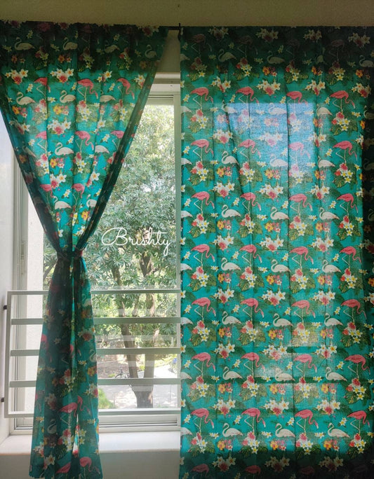 Flamingo botanical tropical semi sheer boho dark teal curtain